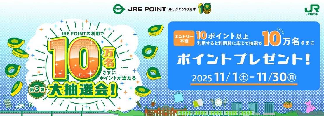 - 11/1~JRE POINTの利用で10万名さまにポイントが当たる大・・・